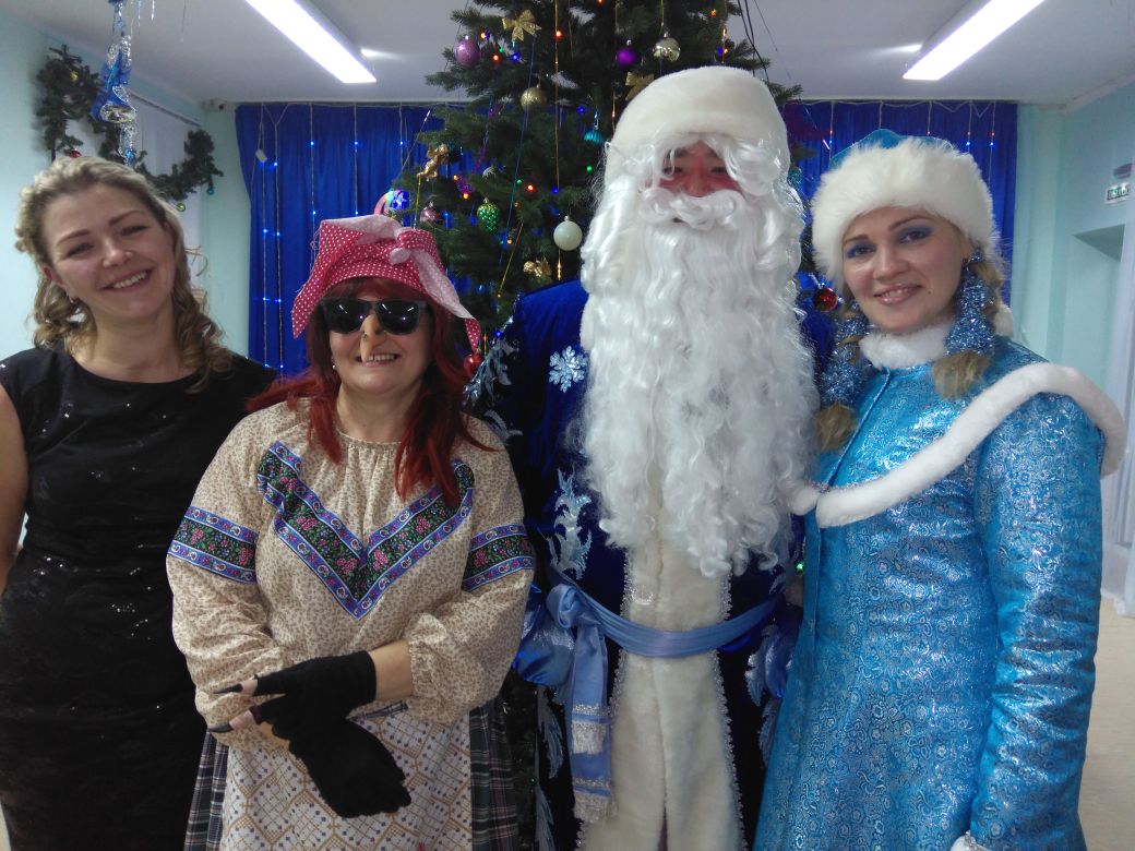 разноцветные сверкающие гирляндыи ярко украшенная елочка принесли детям ощущение чуда. И конечно к нам приходили в гости Дед Мороз с неизменной спутницей Снегурочкой, Баба Яга, почтальон Печкин, Матроскин и Шарик.